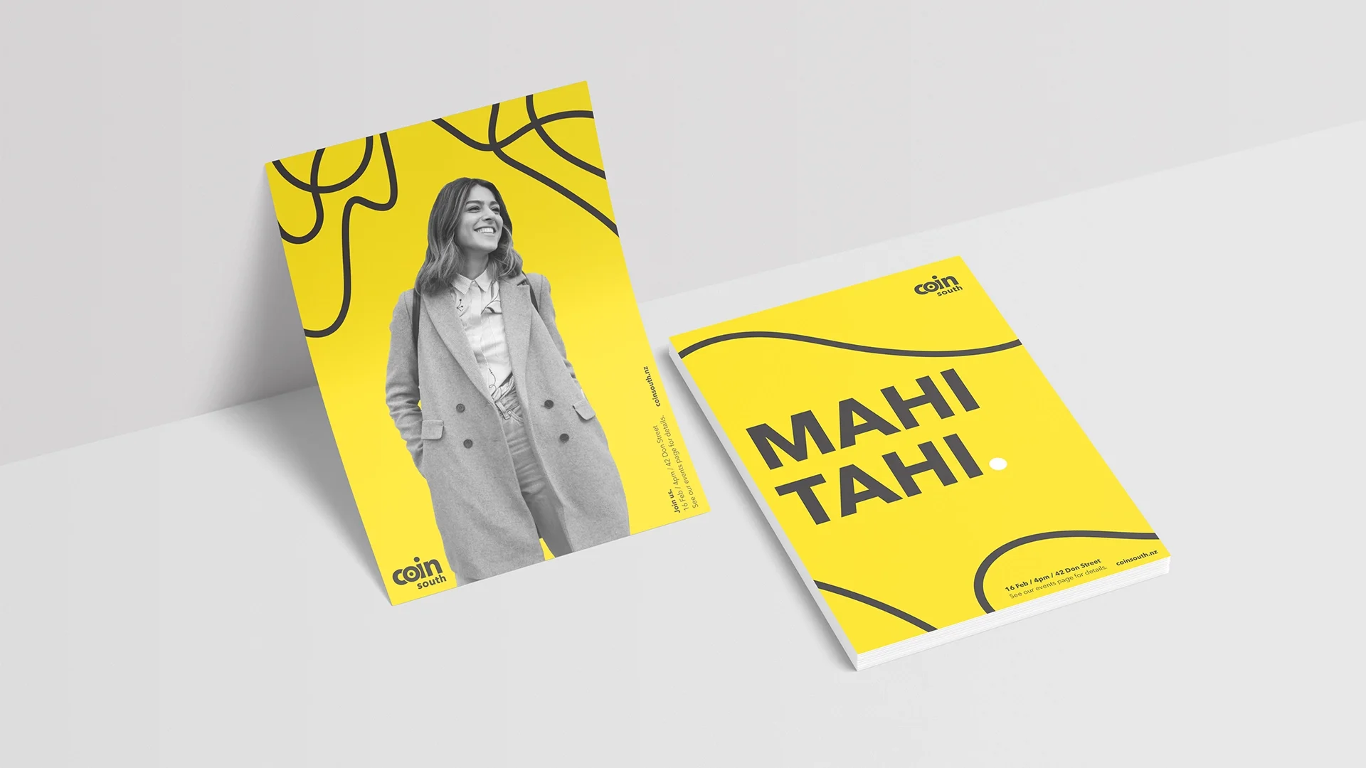 We established an instantly recognisable design style for COIN South, pairing structured, corporate elements with oversized headings, hand drawn lines and pops of bright yellow to convey the energy and momentum the organisation contributes to the start-up community. A comprehensive style guide was created, which enables COIN South’s in-house marketing and communications team to implement the brand consistently across all touchpoints.