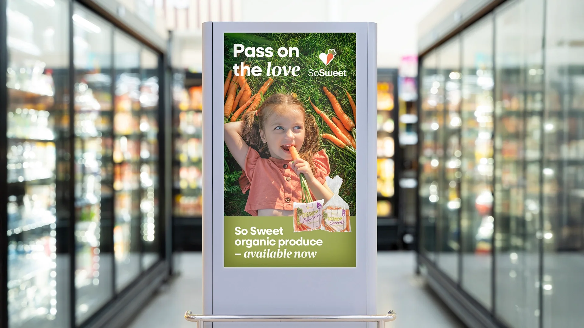 So Sweet had an established produce range and distribution network. They approached us to assist with packaging design, advertising campaigns and in-store signage to assist in growing their brand recognition and increasing sales, as well as to support the launch of their organic product range.
