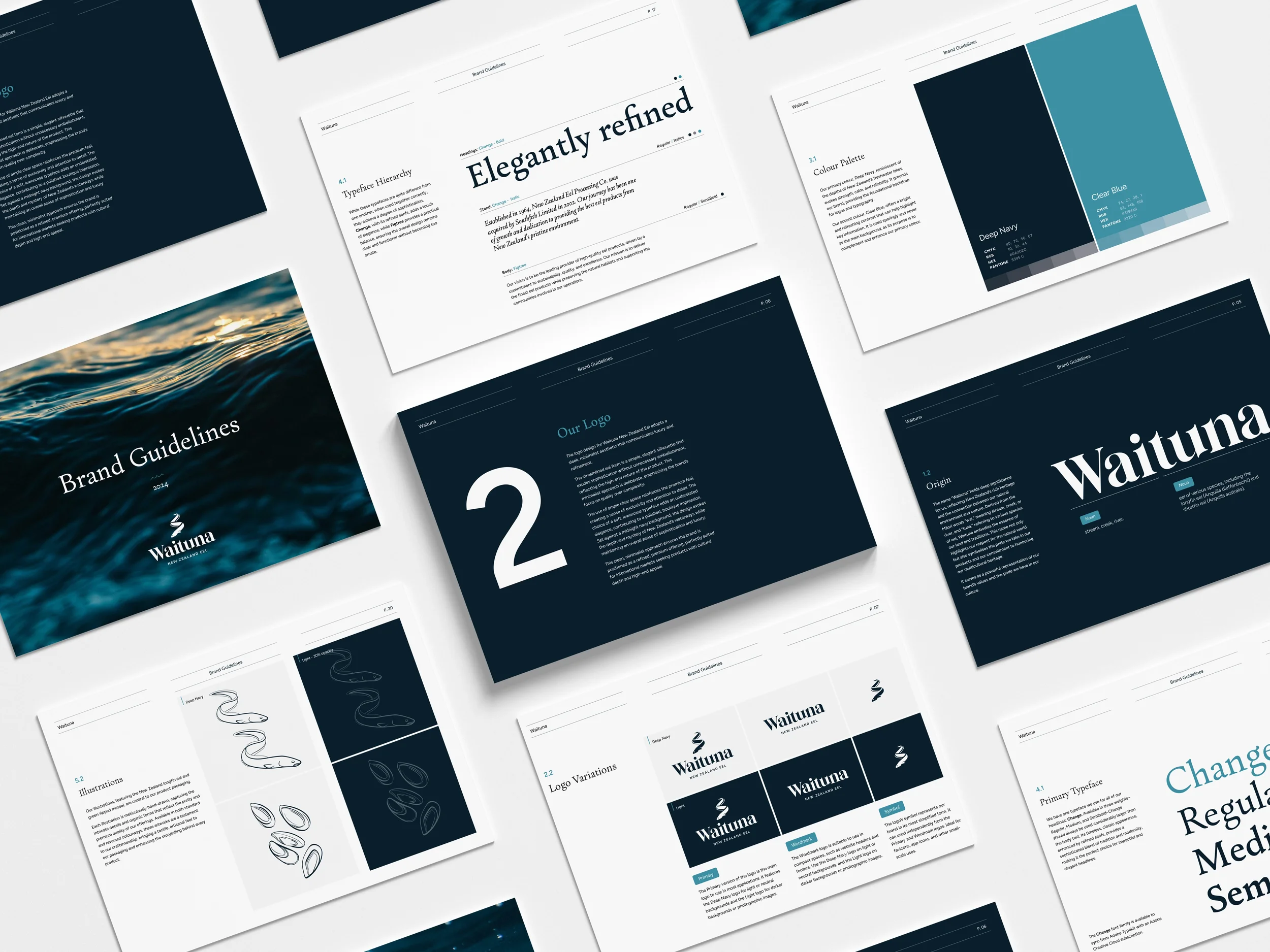 Our work focused on building a brand that reflects the pristine origins and historical significance of the New Zealand longfin eel. We developed a refined, elegant identity that honours its heritage while signalling its place in the premium global food market. This included: